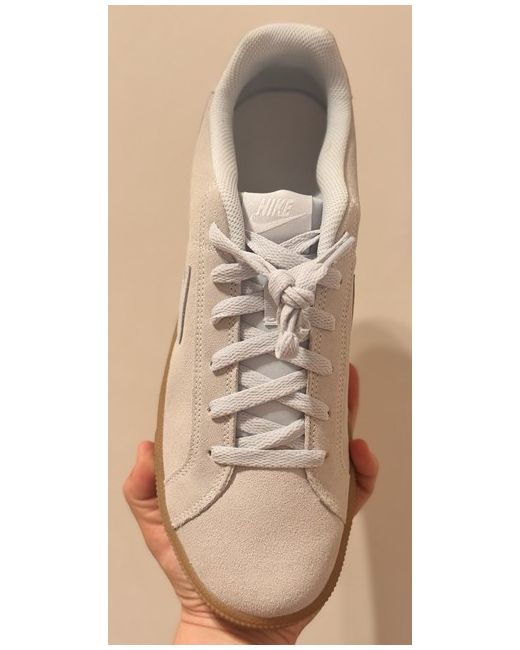 New with box. The WMNS Nike Court Royale Suede in size 9 is a stylish women's trainer with a beige colourway and Nike logo accents. This sneaker features supination pronation and a rubber outsole, providing comfort and support for everyday wear. The Nike Court Royale model is part of the Nike Court product line, making it a versatile option for those looking for a royal-inspired design in a standard shoe width. Perfect for women who appreciate both fashion and functionality in their footwear choices.