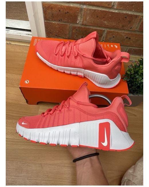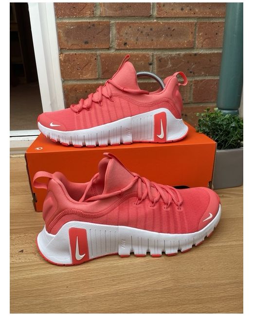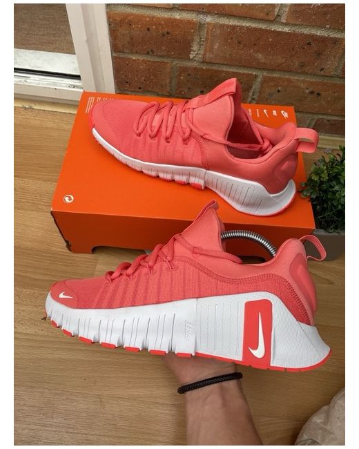 Condition- brand new with half box Size- UK7 Colour- bright crimson / magic ember (pink/orange) The Women's Nike Free Metcon 6 in Magic Ember / Bright Crimson is a stylish and functional trainer perfect for outdoor activities, sports, and athleisure. With a lace-up closure and a foam insole, it offers comfort and support for gym and training sessions, cross training, and CrossFit. The pink colour and Nike branding add a touch of style to this versatile sneaker, making it a must-have for active women in the UK who are looking for a reliable and fashionable footwear option.