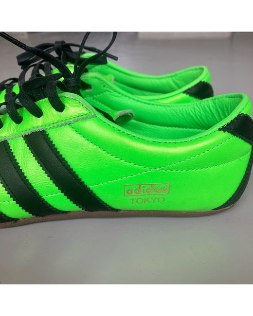 The Adidas Tokyo Size 9 Fresh Green trainers are a stylish and trendy choice for both men and women. With a classic sneaker style and a vibrant green colour, these shoes are sure to make a statement. The Adidas brand ensures quality and durability, making these trainers a great addition to any wardrobe. Released in 2024, these size 9 sneakers are a fresh and on-trend option for those looking to add a pop of colour to their outfit.