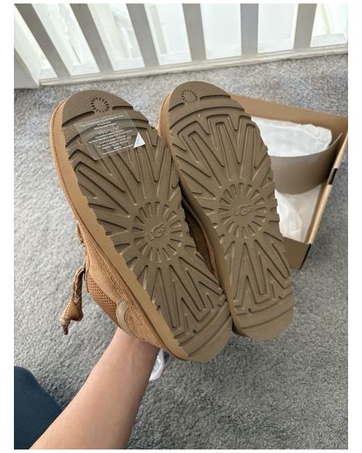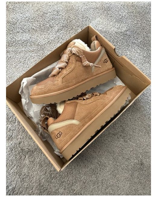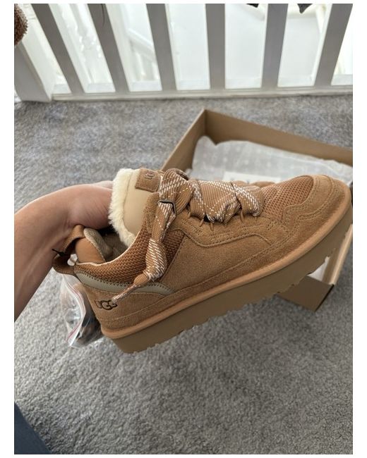 Elevate your winter wardrobe with these UGG Lowmel Chestnut trainers in UK size 6. The shoes are crafted with premium quality materials and feature a classic brown colour that complements any outfit. The standard shoe width ensures a comfortable fit for most women, while the sneaker style adds a touch of casual elegance to your look. These trainers are perfect for the winter season, as they provide warmth and comfort during the chilly months. The UGG brand is renowned for its quality products, and these trainers are no exception. They are not customised and are not considered vintage. Add them to your collection today for a stylish and comfortable winter experience.