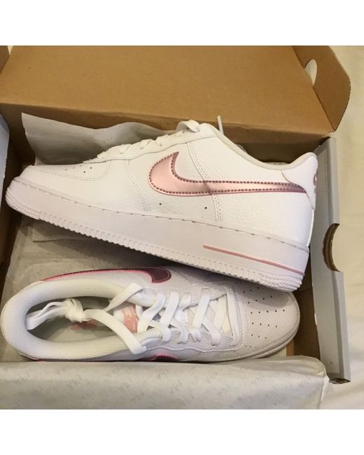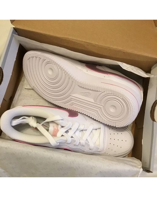 These women's Nike Air force 1s in size 6 feature a stylish design in white with a pink detailing, perfect for various occasions. The shoes are brand new, never been tried on even, includes the box, a perfect gift or a treat for yourself