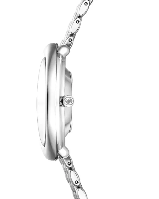 silver-tone dial stainless steel oval case shape Swarovski crystal embellished dial rose gold-tone dial features quartz movement metal bracelet buckle fastening This item comes with a standard one-year warranty from the boutique.