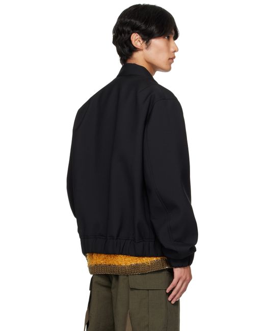 Insulated plain-woven wool-blend bomber jacket. · Stand collar · Offset two-way zip closure · Press-stud tabs at chest · Welt pockets at front · Elasticized hem and cuffs · Utility pocket at sleeve · Full cupro satin lining Supplier color: Black