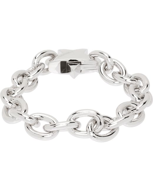 Cable chain bracelet in rhodium-plated brass. Logo-engraved modified clasp fastening. Supplier color: Silver
