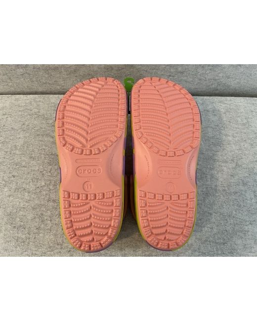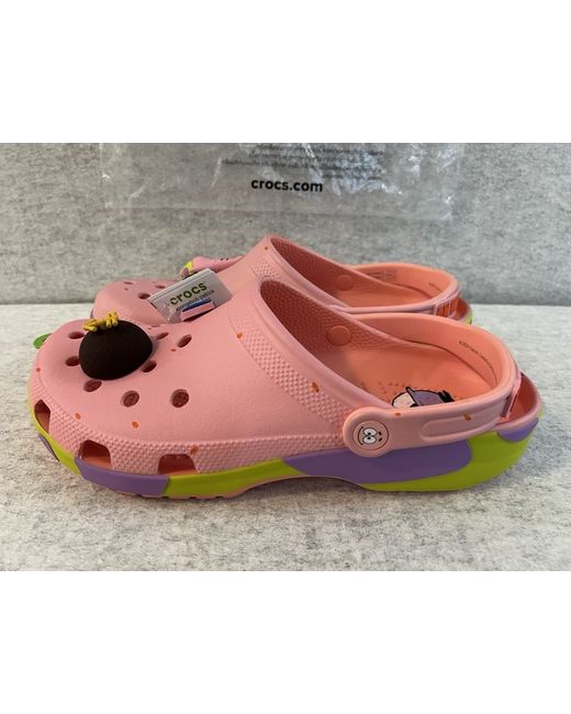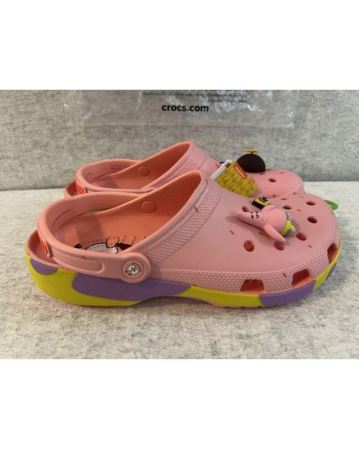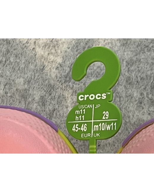 The Crocs Classic Clog Patrick Star SpongeBob SquarePants in UK size 10 for men is a brand new pair of slip-on sandals featuring the iconic characters from the popular animated series. Made from synthetic material in a vibrant pink colour, these Crocs are a stylish and comfortable option for both fans of SpongeBob and those who appreciate a fun and playful footwear choice. The EU size 46 and US size 11 make them a versatile option for a range of shoe sizes, making them a must-have for any SpongeBob enthusiast. - Brand New + Deadstock