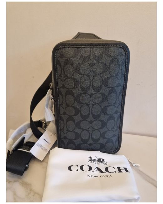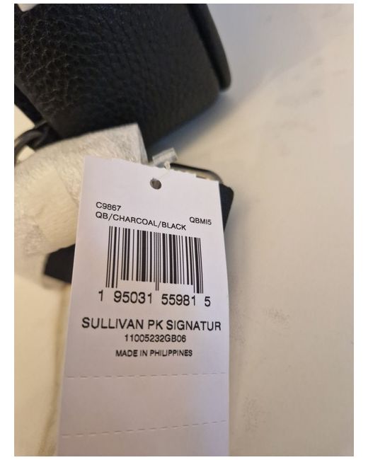 The COACH Sullivan Pack In is a stylish and compact bag designed for men, perfect for travel and casual occasions. Made from a combination of leather and canvas, this small-sized pack features a zip closure and a classic black and greycolourscheme. With its hipster, designer, and beach themes, this versatile accessory is ideal for those looking for a combination of practicality and fashion-forward style. The bag's dimensions of 27cm height, 7cm width, and 16cm depth approx make it the ideal choice for carrying essentials while on the go.