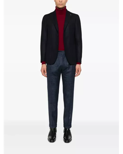 Men's Blue pleated side-adjuster trousers