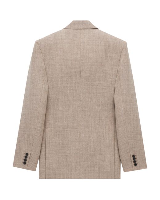 An ‘80s influence dominated the Saint Laurent Autumn/Winter 2025 show as creative director Anthony Vaccarello explored the Maison's history during this era of exaggeration. Defined by its pronounced shoulders, this double-breasted jacket is a result of such inspiration. Crafted from fine wool, its chiselled lines call to the Vaccarello's prowess in creating a masterful silhouette.