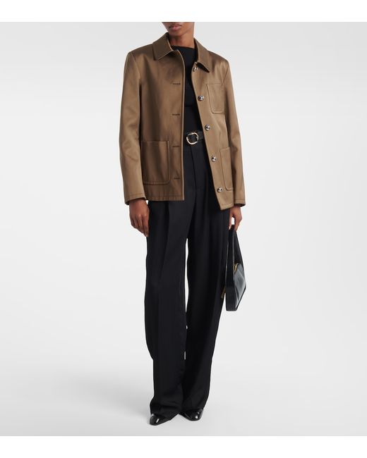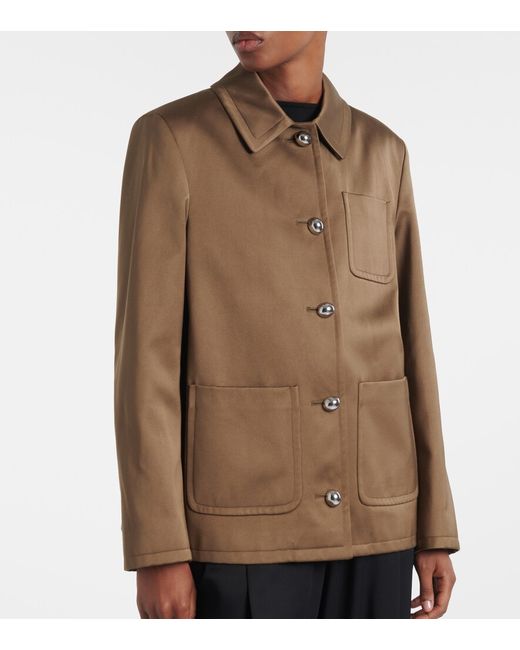 Material: 53% polyester, 47% cotton. Care instructions: dry clean. Made in Italy. Designer color name: Clove. Item color: brown. Lining: 67% viscose, 33% polyester. Fully lined. Closure: buttoned front. Hardware color: silver. Pockets: rounded chest pockets. Cotton.