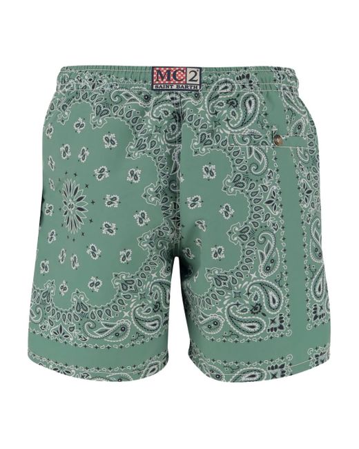 avocado green elasticated drawstring waistband rear button-fastening pocket logo patch to the rear Be mindful to try on swimwear over your own garments.