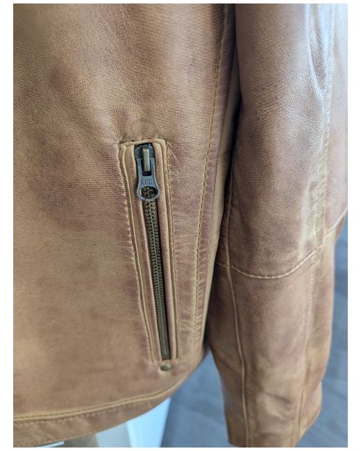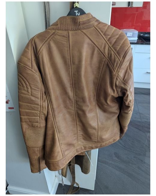 This Men's Tan Real Leather Jacket is a stylish and versatile choice for the casual occasions of winter. Handmade with a biker style, it features a zip closure and a regular fit. The brown colour and classic design make it a timeless wardrobe staple, perfect for riding or everyday wear. Size M, please see attached sizing chart for exact measurements.