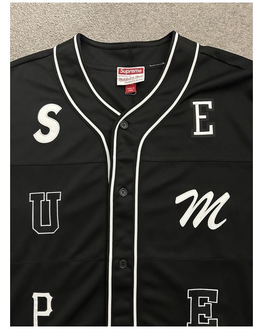 The Supreme Mitchell & Ness Patchwork Baseball Jersey in XL is a stylish and comfortable option for men looking to add a casual and trendy piece to their wardrobe. This button-up jersey features short sleeves and is made from machine washable jersey fabric in a classic black colour. The regular fit ensures a comfortable and flattering silhouette, making it perfect for everyday wear. The Supreme brand adds a touch of streetwear cool to this timeless baseball jersey.