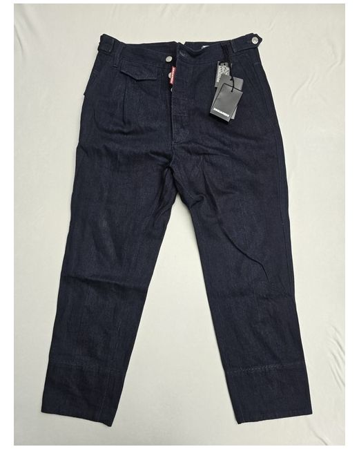 This product is a pair of Dsquared2 men's jeans in size 46. The jeans are crafted from cotton denim in a classic blue colour, with a slim fit and straight style. Made in Italy, these jeans feature a button closure, 5-pocket design, and are machine washable for easy care. The brand's logo accents add a touch of style to these timeless trousers, perfect for the spring season.