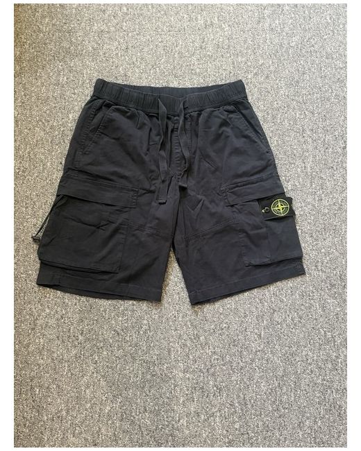The Stone Island Men's Cargo Shorts in size M are a stylish and practical choice for casual occasions during the summer season. Made from cotton with a dark fabric wash, these flat front shorts feature a logo accent and cargo pockets for added functionality. The mid-rise waist and regular fit offer comfort and a flattering silhouette, making them a versatile addition to any man's wardrobe. Pair them with a simple t-shirt and sneakers for a laid-back yet on-trend look.