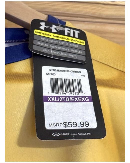 Make workouts fun. Rare out of production design. Show off your love for Logan with this stunning Under Armour compression t-shirt. The vibrant gold colour and iconic character print make it the perfect addition to any Marvel fan's activewear collection.