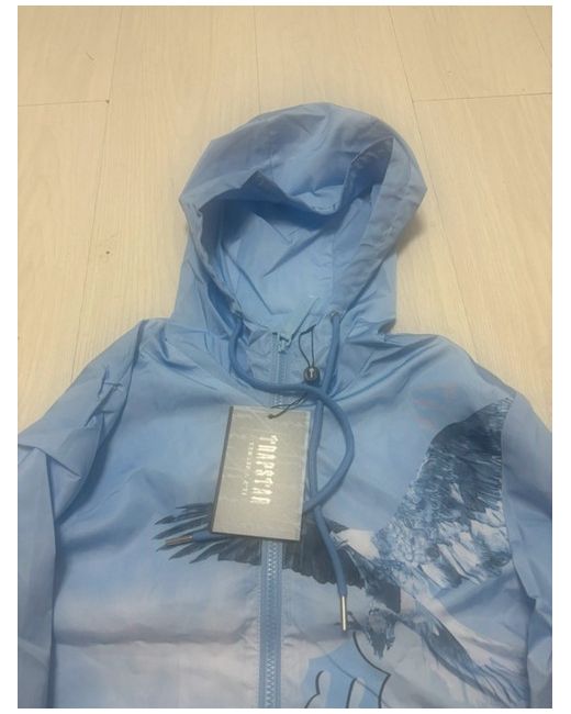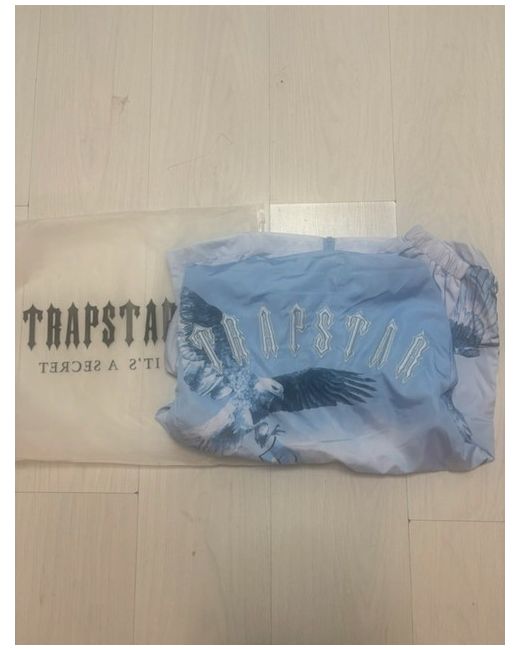The Trapstar Windbreaker Jacket in size S, Eagle Blue, is a stylish and practical choice for casual occasions in the winter season. Made from polyester material, this zip-closed jacket features a regular fit and a logo accent, adding a touch of the brand's signature style. The blue colour adds a vibrant pop to any outfit, making it a versatile addition to any man's wardrobe. With its insulation material also made of polyester, this jacket provides warmth and comfort while staying on-trend with its windbreaker style.