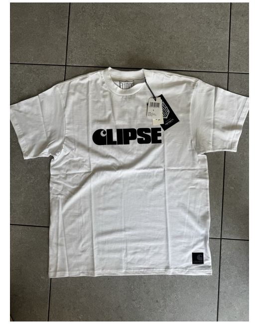 The Clipse x Carhartt White Tee in size Large is a stylish and versatile addition to any man's wardrobe. Made from comfortable cotton material, this short sleeve t-shirt features a logo accent on the front, showcasing the renowned Carhartt brand. With the classic white colour and machine washable design, this regular fit t-shirt is perfect for everyday wear and can be easily paired with jeans or shorts for a relaxed and casual look. Ideal for those who appreciate quality and style in their clothing choices.