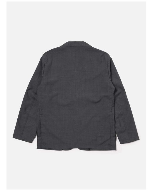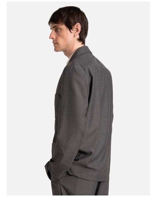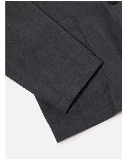 Universal Works Two Button Jacket in Grey Marl Tropical Suiting A new contemporary-looking jacket, with slight shaping, a longer, slightly wider lapel and two-button fastening. The fit is loose and unstructured, bringing a casual fit to a formal style.