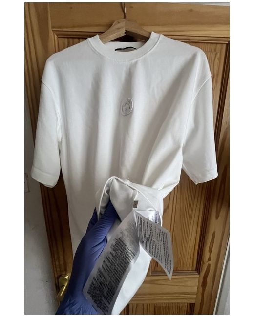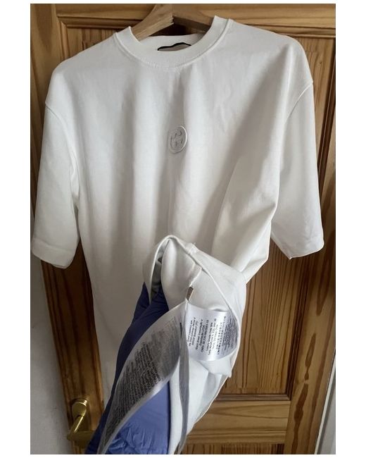 The Gucci T-shirt is a stylish and versatile addition to any man's wardrobe. Made from soft cotton jersey fabric, this white t-shirt features a classic round neck and short sleeves, perfect for the summer season. The Gucci logo accent adds a touch of designer flair, while the machine washable garment care makes it easy to keep this regular fit t-shirt looking great. Crafted in Italy, this Gucci T-shirt embodies luxury and sophistication, making it a must-have for fashion-conscious individuals.