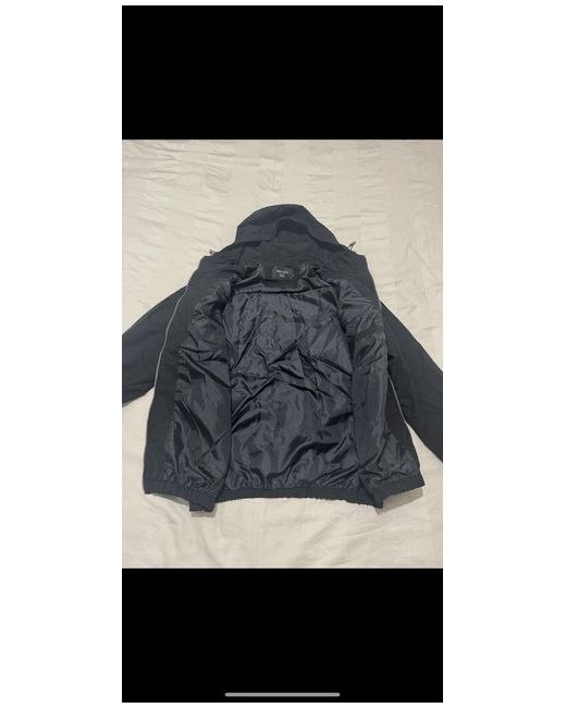 The Men’s Prada Jacket in size small is a stylish and versatile choice that fits a size medium. Made from durable nylon with a windbreaker style, this black jacket is perfect for casual occasions. Featuring a zip closure and crafted in Italy, this Prada jacket combines high-end fashion with functionality for walking activities. The iconic PRADA brand name adds a touch of luxury to this timeless wardrobe essential. Size small but can fit in size medium!!!!
