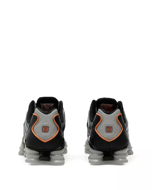 grey ribbed design shox cushioning lace-up fastening black heel counter orange accents
