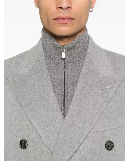 grey double-breasted fastening patch pockets peak lapels long sleeves buttoned cuffs