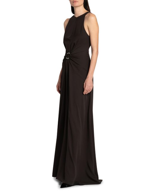 This maxi dress from Giorgio Armani, crafted of luxe silk, features an O-ring at the waist and an alluring open V'd back. V-neck and V'd back Sleeveless Concealed back zip closure 100% silk Trim: 100% textile Dry clean Made in Italy SIZE & FIT Model measurements: 5'10" tall Model is wearing a US size 4 ABOUT THE BRAND Since launching his self-named fashion empire in 1975, Milanese designer Giorgio Armani has both revolutionized women's and men's fashion, and the fashion industry writ large. His now signature silhouettes forged new directions at the time, with more natural fits and neutral colors. To this day, the Armani name is synonymous with an effortless and approachable Italian aesthetic that can be found in its expertly tailored clothing, accessories and beauty collections. Advanced European - B30 Consignment > Giorgio Armani > Saks Fifth Avenue. Giorgio Armani. Color: Dark Brown. Size: 6.