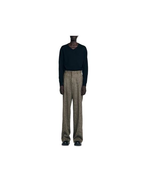 Sandro Wide Leg Trousers.Color:String Chine.Size:36 FR / 28 US.Material:52% polyester/15% acrylic/15% wool/12% viscose/5% silk, 1% elastane ; belt lining: 65% polyester/ 35% cotton; trouser lining: 100% polyester; pocket lining: 65% polyester/35% cotton.Pants.