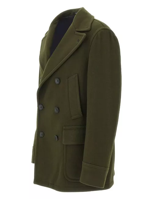 forest green wool blend double-breasted button closure wide notched lapels four pockets