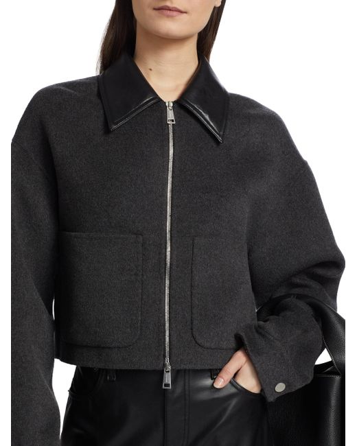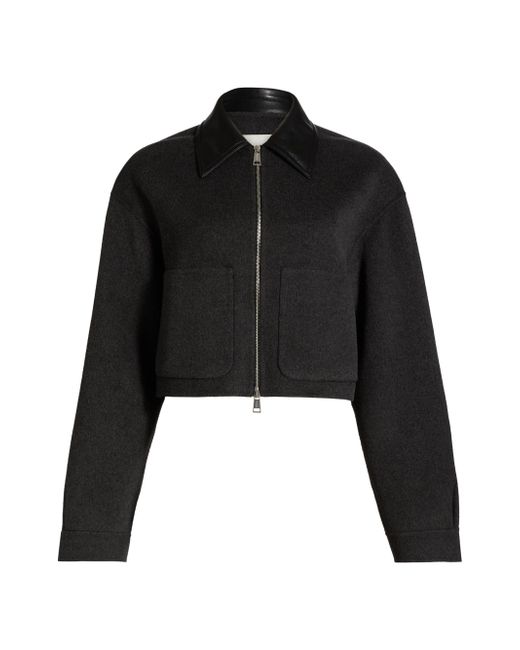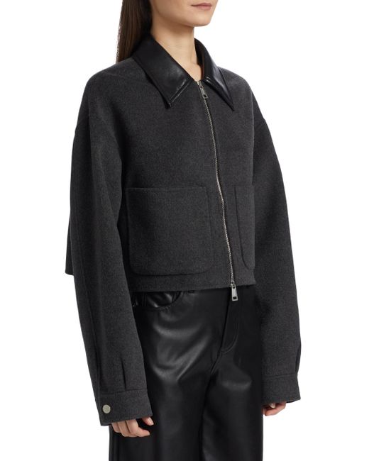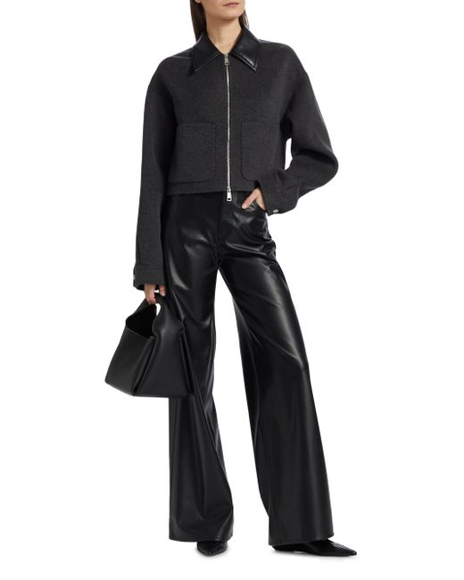 Crafted of soft wool, the Phebe jacket from Nanushka is cut to a cropped silhouette and styled with a faux-leather collar. Spread collar Long sleeves Front patch pockets Front zip closure 90% wool/10% silk Trim: 100% polyester Combo 1: 80% polyester/20% polyamide Dry clean Imported SIZE & FIT About 18.8" from shoulder to hem Model measurements: 5'10" tall Model is wearing a US size Small. Contemporary Sportswear - Trend > Nanushka > Saks Fifth Avenue. Nanushka. Color: Grey Melange Black. Size: Large.