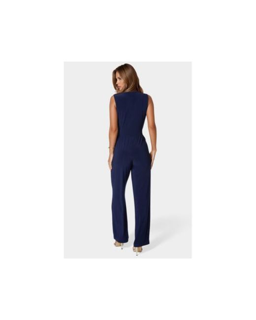 The Bebe Women's Jersey Wrap Tie Jumpsuit features a sleek and sophisticated design, perfect for both casual and dressier occasions.