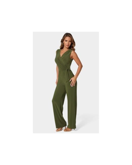 The Bebe Women's Jersey Wrap Tie Jumpsuit features a sleek and sophisticated design, perfect for both casual and dressier occasions.