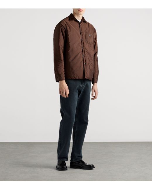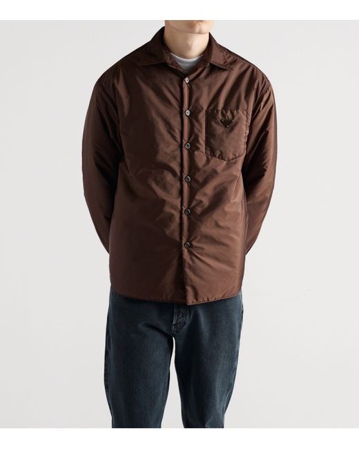 Speaking to Prada's functional leanings, this shirt comes a classic cut from its Re-Nylon collection. Fashioned from recycled nylon, this piece is shaped with light padding, giving structure to this sleek piece. It's finished with the House's triangle logo, an emblem of transformative design.