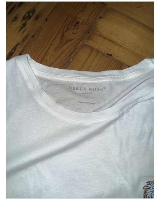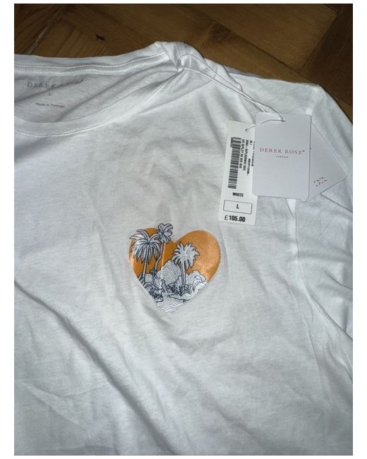 The Derek Rose White Tee in size L is a classic and stylish men's T-shirt made from comfortable cotton material. With a regular fit and short sleeves, this tee is perfect for everyday wear. The white colour adds a clean and versatile touch to any outfit, while the machine washable design makes it easy to care for. Whether worn casually or dressed up, this Derek Rose T-shirt is a must-have addition to any man's wardrobe.