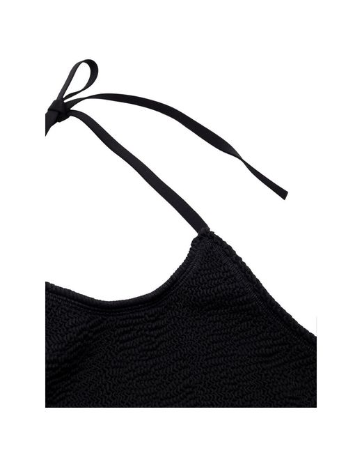 Two Piece Swimsuit in Black Mille Pieghe Bottega Veneta. In jersey with knitwear workmanship Top: Top band with elastic band on the bottom, fastening behind the neck with laces. Bottom: High-waisted culotte briefs, elastic waist. Composition: 97% Polyamide, 3% Elastane Internal SKU: 25GIU63 Brand SKU: 6870403V9451000