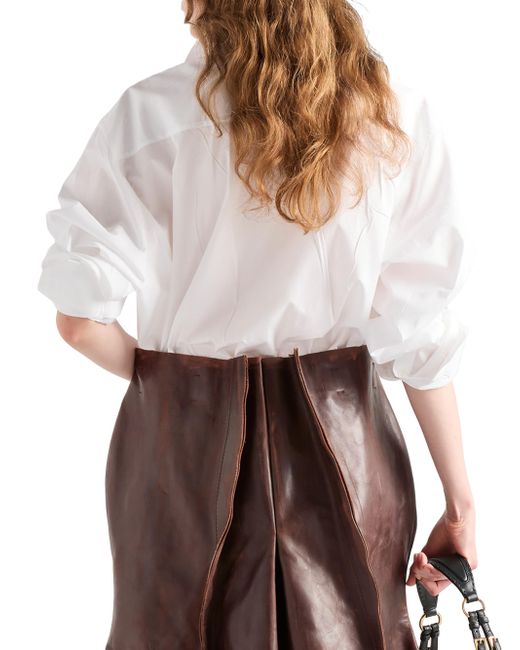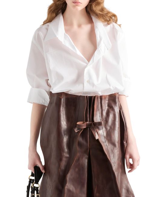 Poplin Shirt. Masculine fit Shirt collar Front button closure Fabric triangle logo Straight hem Made in Italy 100% Cotton. Lsd Rtw - Prada Rtw > Prada > Saks Fifth Avenue. Prada. Color: White. Size: 2.