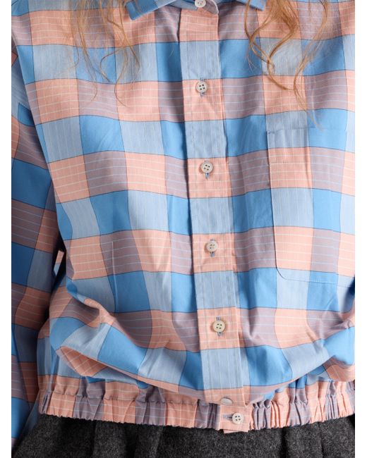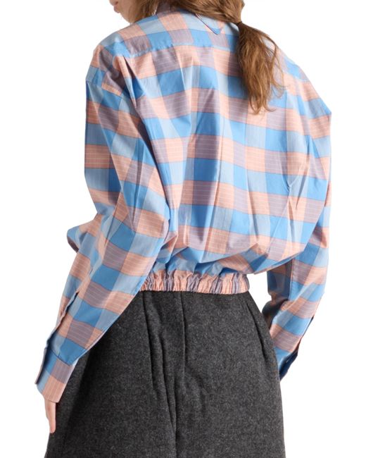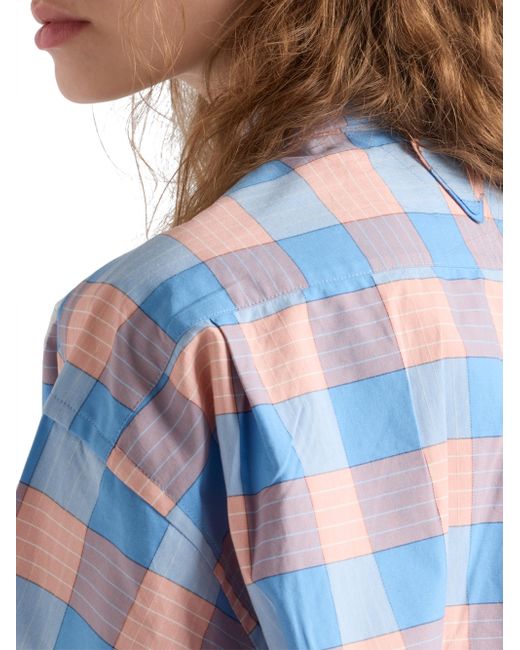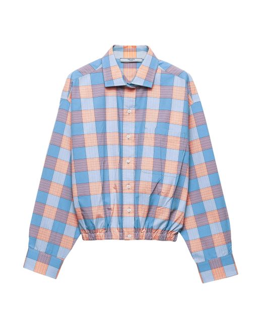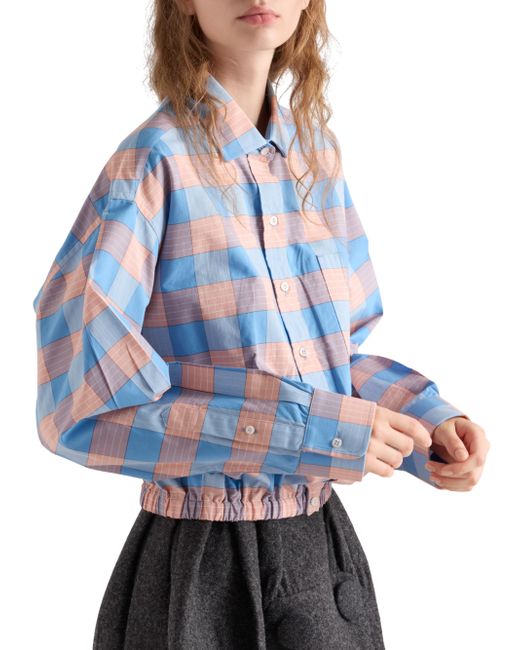 Checked Poplin Shirt. Oversized fit Shirt collar Front button closure Long sleeves Patch pocket on the front Fabric triangle logo Elasticized hem Made in Italy 100% Cotton - 100% Trochus Niloticus. Lsd Rtw - Prada Rtw > Prada > Saks Fifth Avenue. Prada. Color: Pink. Size: 0.