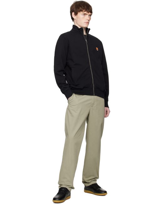 Men's Black Fox Head Patch Fullzip Regular Sweatshirt