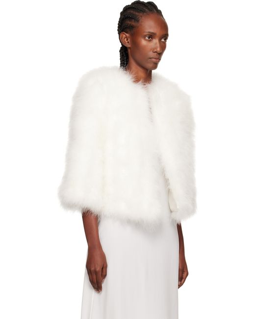 Lightweight turkey feather jacket. · Round neck · Hook-eye closure · Welt pockets · Cropped hem · Three-quarter sleeves · Full silk satin lining Supplier color: Meringue Body: 100% turkey feather.