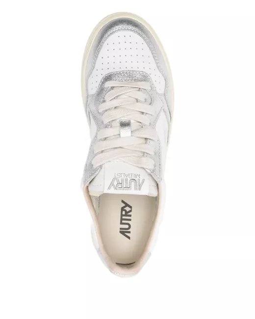 white leather construction silver-tone metallic panel perforated detailing flat laces rubber sole