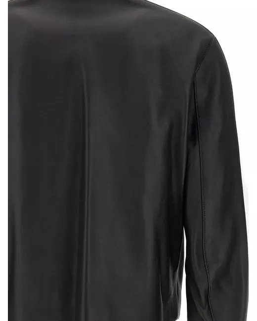 black lambskin full zip fastening stand-up collar contrasting panel detail zip pockets
