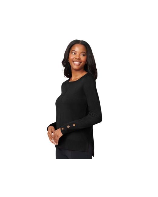 Elevate your everyday with this women's button cuff lightweight tunic sweater from Melissa Paige, offering effortless style and a touch of refined detail.