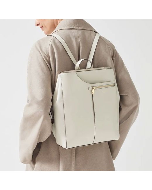 The interior has a small zip pocket, slip pocket, and the Radley jacquard lining in sand. Closure: Ziptop. Material: Crafted in smooth leather / Chalk. Range: Pockets Icon.