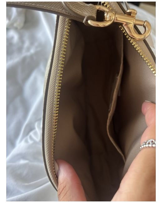 The Coach Leather Shoulder Bag is a stylish and practical accessory for women. Made from high-quality leather in a rich brown colour, this medium-sized bag features a rectangular shape with a zip closure for secure storage. The shoulder strap handle style adds versatility to this designer piece, perfect for casual occasions. The gold hardware accents and inner pockets add convenience and elegance to this timeless bag. Complete with a detachable strap, this Coach shoulder bag is a must-have for any fashion-forward woman.