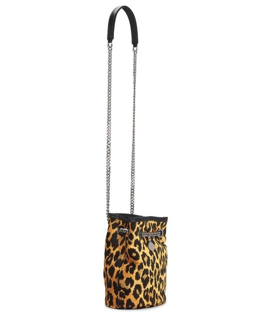 Jacquard leopard print exterior with canvas lining • Made in Italy • Open top styling • One main compartment • Interior slip pocket •• Width: 7.5 inches/ 19cm • Height: 7.5 inches/ 19cm • Depth: 4.75 inches/ 12cm • Shoulder strap drop: 8 inches/ 20.5cm • Cross-body strap: 18 inches/ 46cm