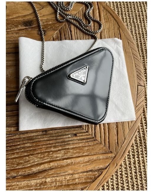 The Prada Triangle Mini Contenitori Leather Crossbody Bag is a stylish and compact accessory designed for women. Crafted from luxurious black leather in Italy, this mini bag features a trendy crossbody style, making it perfect for casual occasions. With the iconic PRADA brand name, this chic bag adds a touch of sophistication to any outfit, making it a must-have for fashion-forward women on the go. Approximately 13.5*9*2cm