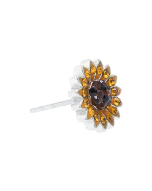 Add a touch of magical whimsy to your outfit with these crystal sunflower stud earrings. Set in fine sterling silver and rhodium plated for lasting shine. Post back with friction closure for comfort and safety.