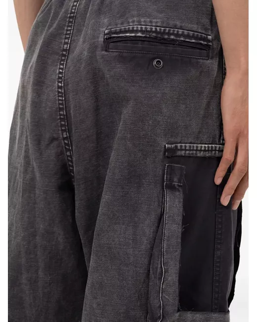 black drawstring fastening cargo pockets panelled design cotton
