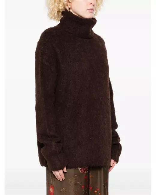 dark brown turtleneck fluffy texture long sleeves straight hem