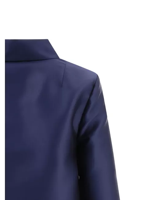 navy blue single-breasted closure three buttons collared neckline three-quarter sleeves straight hemline